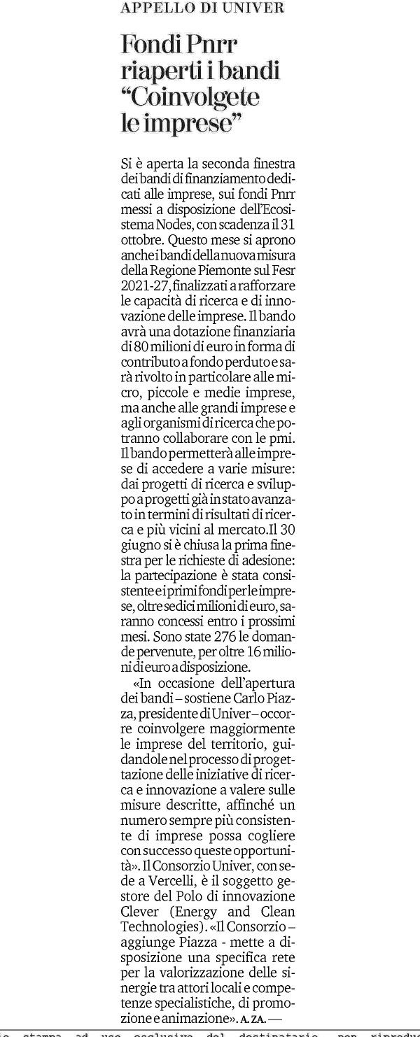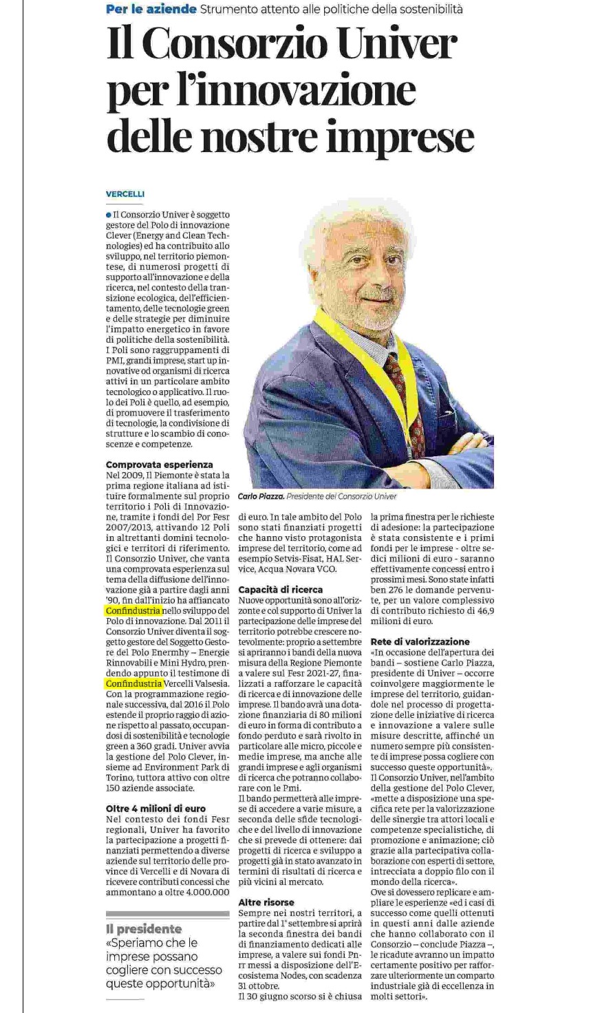 Contributi per imprese: Grazie a Univer a Vercelli e Novara oltre 4 milioni